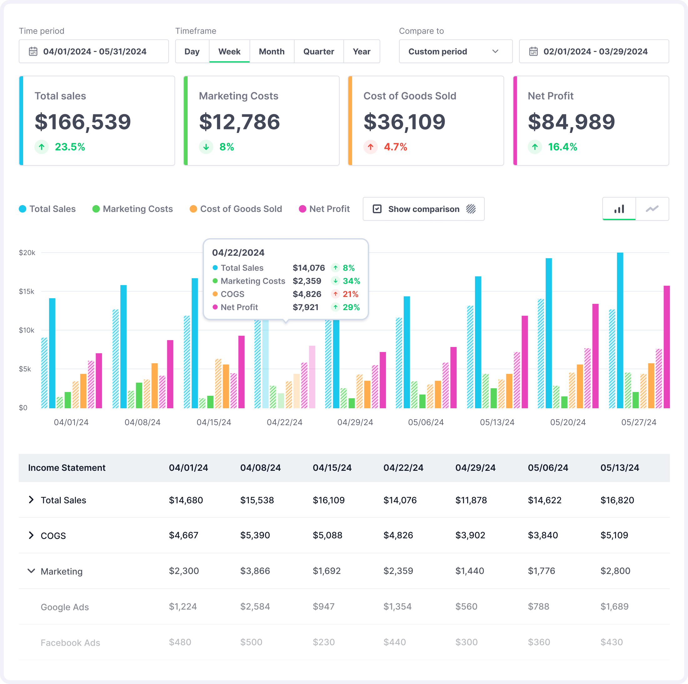 Business growth relies on smart, actionable insights. This service turns raw data into strategic direction through profit and loss analysis, margin optimization, returns tracking, and campaign structuring. We help evaluate marketing efforts and bundle products in ways that maximize both revenue and efficiency.